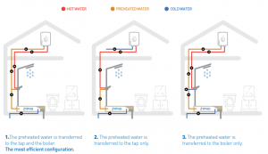 Ο εναλλάκτης νερού-νερού ZYPHO, χρησιμοποιεί αυτή την θερμότητα που αποβάλλεται στην αποχέτευση, για να προθερμάνει το κρύο νερό του δικτύου. Πλέον το ‘’κρύο’’ νερο του δικτύου έχει υψηλότερη θερμοκρασία, με αποτέλεσμα να χρειαζόμαστε λιγότερο ζεστό νερό απο τον λέβητα, θερμοσίφωνα ή όποια άλλη πηγή θέρμανσης υπάρχει.